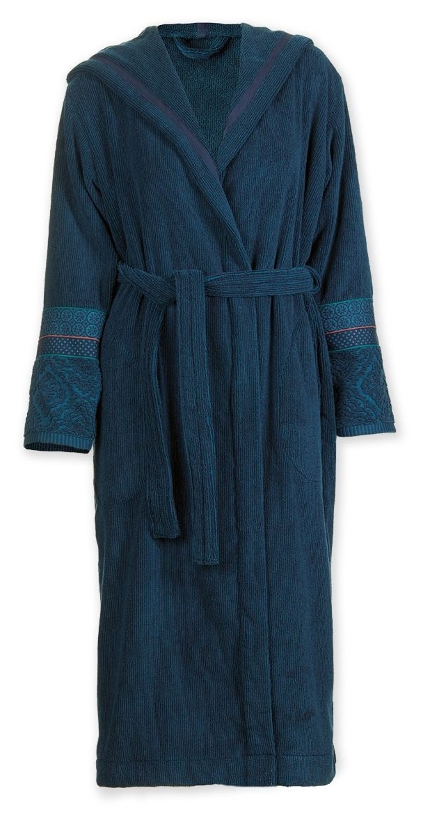 Deze fijne badjas is afkomstig van het merk Pip Studio. De badjas heeft een lang model en is voorzien van een blauw/ wit streepjes dessin. De nadruk bij deze badjas ligt bij de prachtige mouwen die versierd zijn met verschillende vormen en kleuren. Een onmiskenbaar dessin van dit stijlvolle merk. De badjas is voorzien van een capuchon, diepe steekzakken en een ceintuur om uw middel. De Soft Zellige badjas is gemaakt van 100% hoogwaardige katoen velour met een kwaliteit van 500 gr/m2. Hierdoor is deze badjas heerlijk zacht en heeft de badjas een erg hoge kwaliteit. De badjas kan gewassen worden met gelijke kleuren tot 60 graden en is geschikt voor de wasdroger.