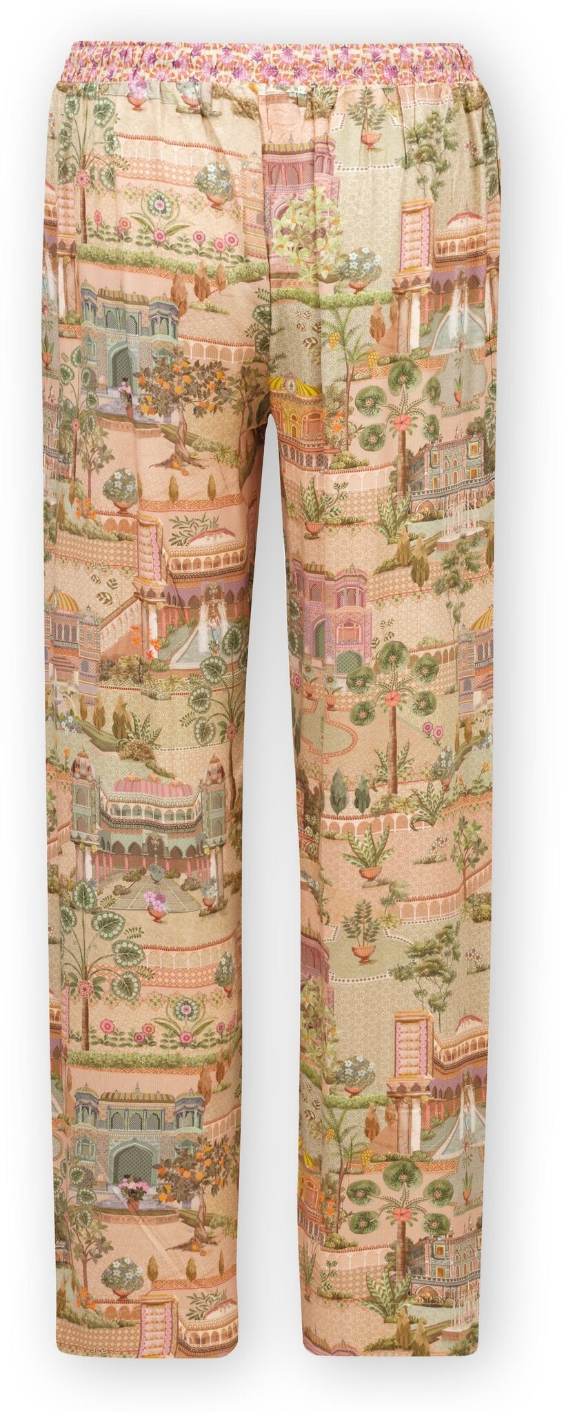 Deze soepelvallende Alcazar broek heeft een recht los model. Ideaal voor de warme zomerse avonden op het strand! Deze broek heeft wijde pijpen en een elastieken tailleband met een jersey aansnoer koord voor extra comfort. Gedecoreerd met het Alcazar dessin in diverse kleuren. Het Alcazar dessin neemt je mee naar het Sevilla van vroeger, toen de stad voornamelijk bestond uit grote zandkleurige paleizen, gedecoreerd met Moorse motieven en strak aangelegde paleistuinen met de prachtigste fonteinen. Gemaakt van 100% viscose waardoor de broek heerlijk zacht is. Mix & match met een top met dezelfde print of een bijpassende effen top voor een casual look.