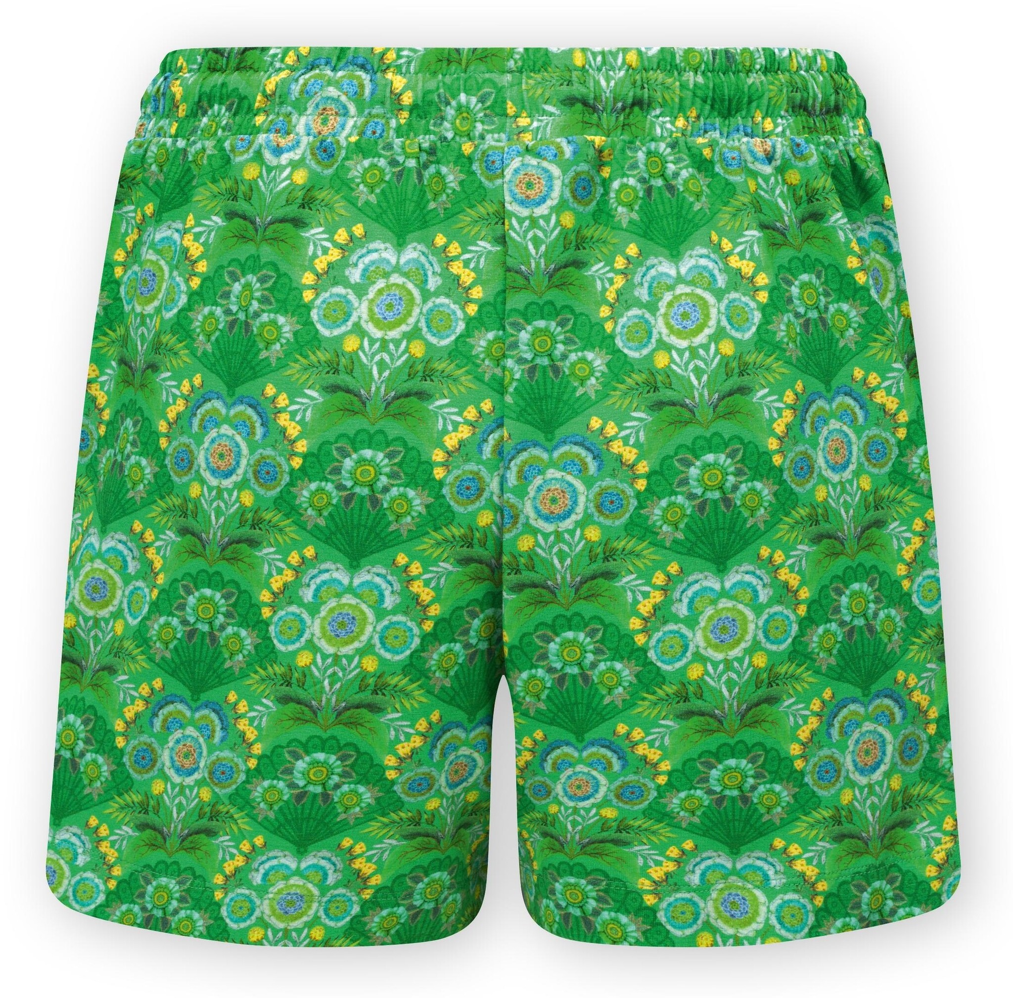 Deze Fiesta de Flamencos korte broek uit onze Spring Summer loungewear collectie voelt aangenaam en knus. Gedecoreerd met het Fiesta de Flamencos dessin in groen. Het Fiesta de Flamencos dessin is geïnspireerd op Spaanse waaiers versierd met klassieke felgekleurde rozen. Naast een elastische taille, heeft het broekje ook een koord voor extra comfort. Stijl met een bijpassende top of mix & match met andere items uit de collectie en creëer een prachtige combinatie. Heerlijk voor in huis, maar ook voor het strand of park is de Fiesta de Flamencos Shorts de juiste keuze.