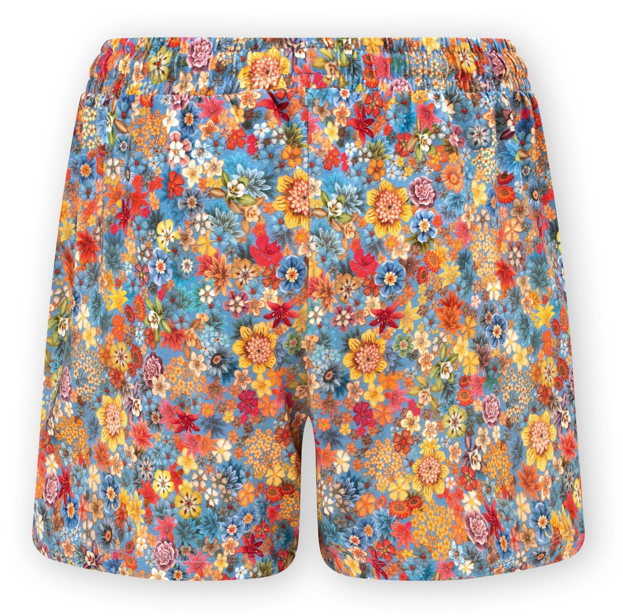 Op zoek naar een comfortabel, vrolijk en luchtige shorts? De Tutti i Fiori korte broek uit onze Spring Summer loungewear collectie is het allemaal. Gedecoreerd met het fleurige Tutti i Fiori dessin in lichtblauw. Het design bestaat uit een strooisel van kleine bloemen. Tussen de bloemen poppen hier en daar kleine felgekleurde bloemtjes op, wat het een rijke uitstraling geeft. De elastische taille en het koord rondom zorgt voor ultiem comfort. Mix & match deze shorts met andere vrolijke prints uit onze nieuwste loungewear collectie of ga voor een simpele top.