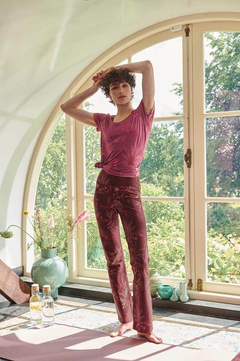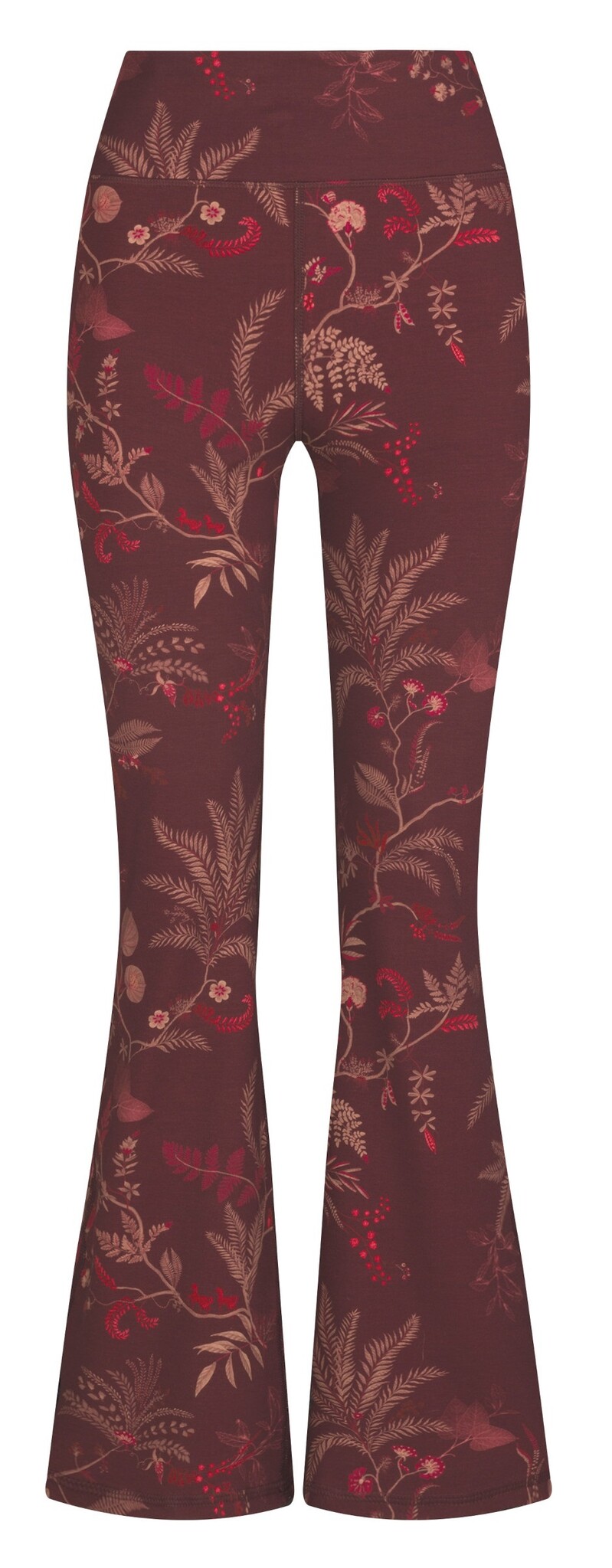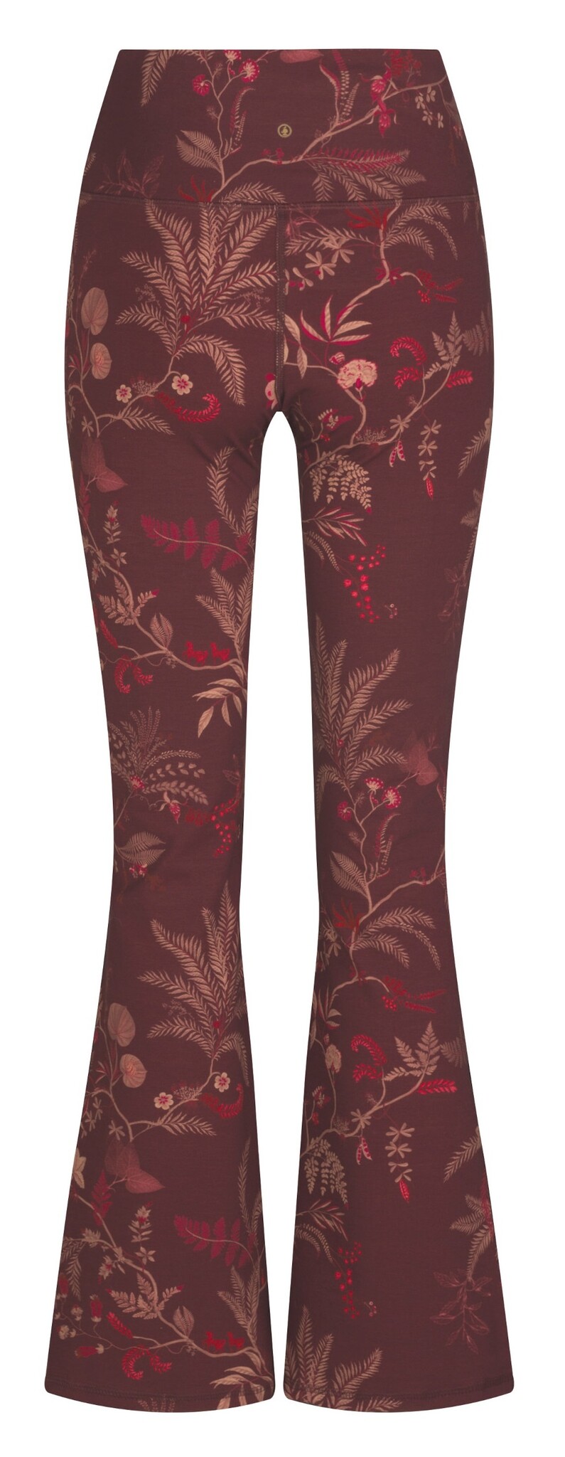 en musthave om te dragen naar je yogales of gewoon voor allerdaags binnen en buiten. De flared legging is weer terug. De donkerrode legging in print Isola flatteerd het lichaam en voelt als een tweede huid met een ultrahoge tailleband. De legging is aansluitend op het lichaam en wijd uitlopend bij de knie. Doordat de legging een hoog percentage elastane heeft biedt het een comfortabele compressie en geeft je lichaam een perfecte vorm.