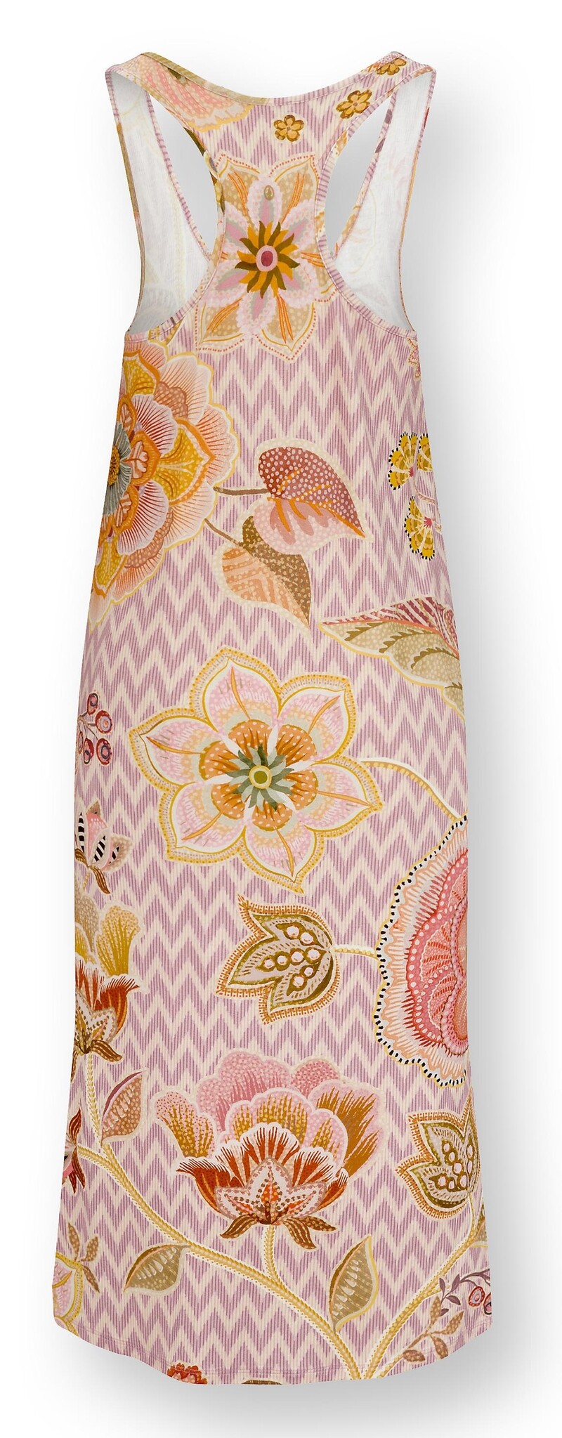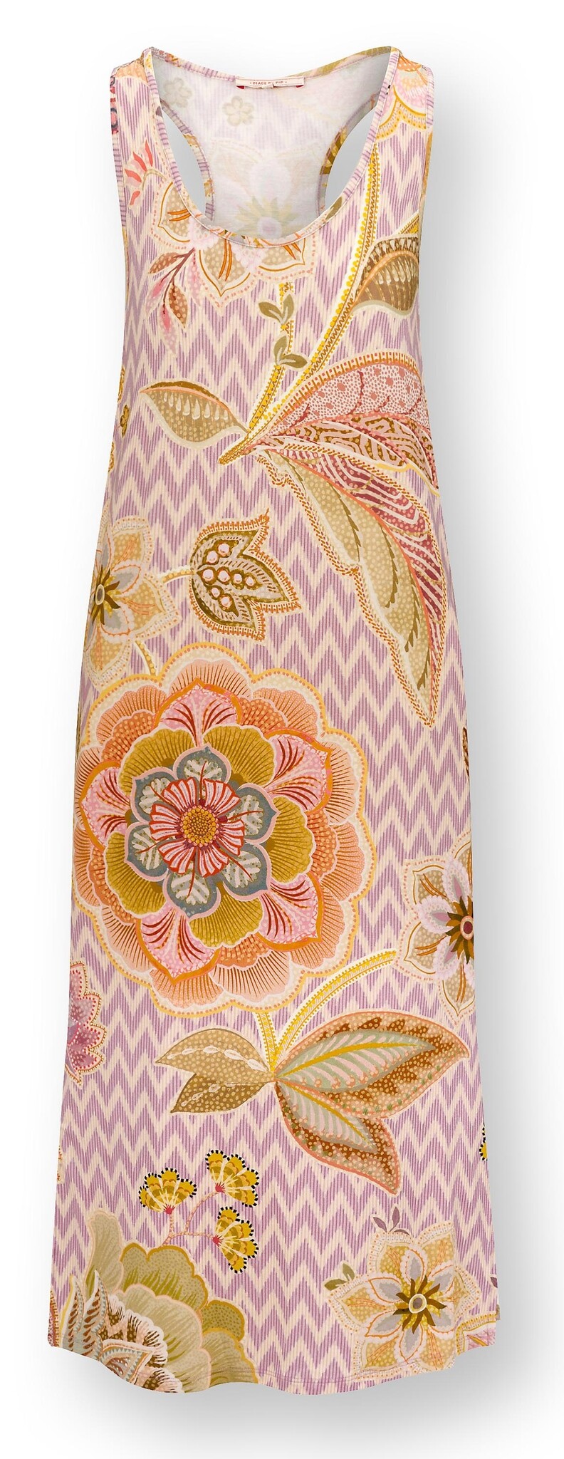Kom heerlijk tot rust in het Damara Nachthemd Mouwloos. Dit comfortable mouwloze nachthemd heeft een ronde hals en is gemaakt van een heerlijk zacht stretch viscose. De comfortabele stof en de stijlvolle print maken dit nachthemd perfect voor een ontspannen nachtrust. Het Hakuna dessin heeft grote rijk gedecoreerde bloemen en bladeren, die geïnspireerd zijn op Afrikaanse wax prints. De bloemen zijn versierd met stippelranden, streepjes en andere speelse details. De ondergrond heeft een vrolijke zig zag streep.