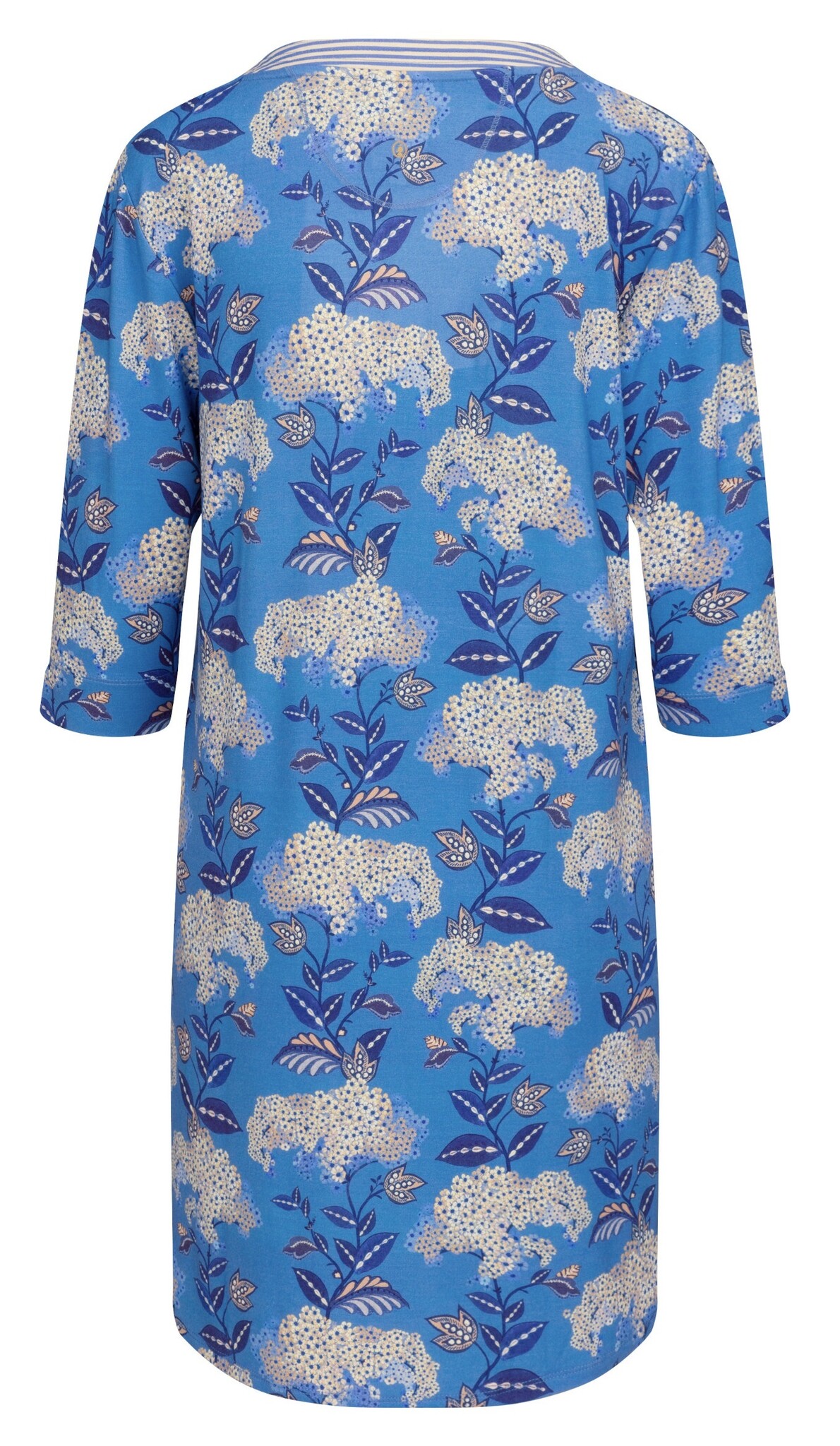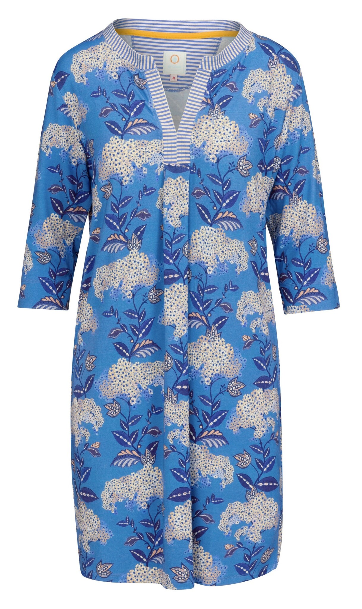 Een gemakkelijk te dragen kaftanjurk in de prachtige print Flora Firenze met de kleur kobaltblauw. Gemaakt van zachte katoenen voile. De hals is afgewerkt met het Little Sumo Stripe dessin. Perfect voor vakanties met warm weer of als strandcover-up op zonnige stranddagen.