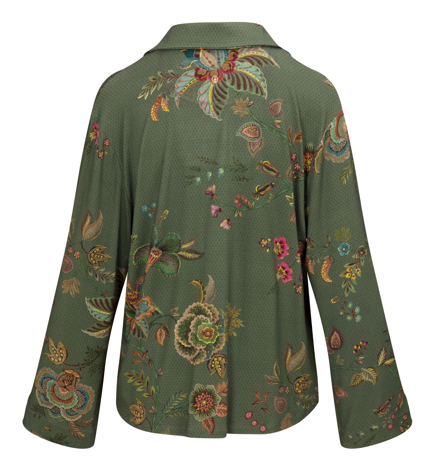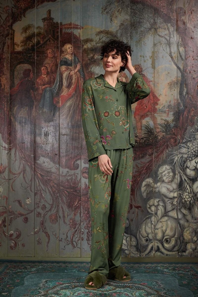 Voel je uitgerust en word rustig wakker in deze groene top met het Cece Fiore dessin. Deze top met lange mouwen en een opstaande kraag is gemaakt van 95% glanzend viscose stof en 5% elastaan met een oversized pasvorm. Combineer deze top met een broek in dezelfde print om hem als complete set te dragen. Of mix en match de top met andere items uit de nieuwe homewear collectie.