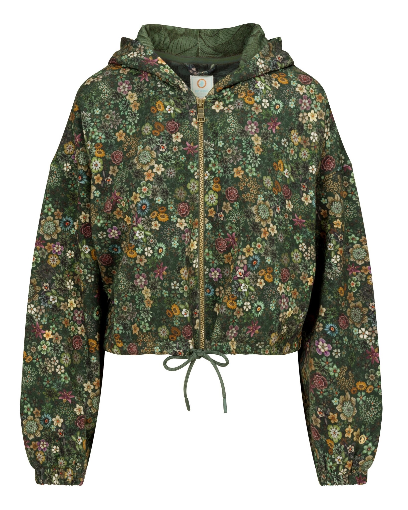 Dit groene vest is gedecoreerd met het speelse Tutti i Fiori dessin. De print bestaat uit een herhaald bloemenpatroon. Het vest heeft pofmouwen en een koord rond de taille om dit aan te trekken. Het vest is cropped en heeft een capuchon.