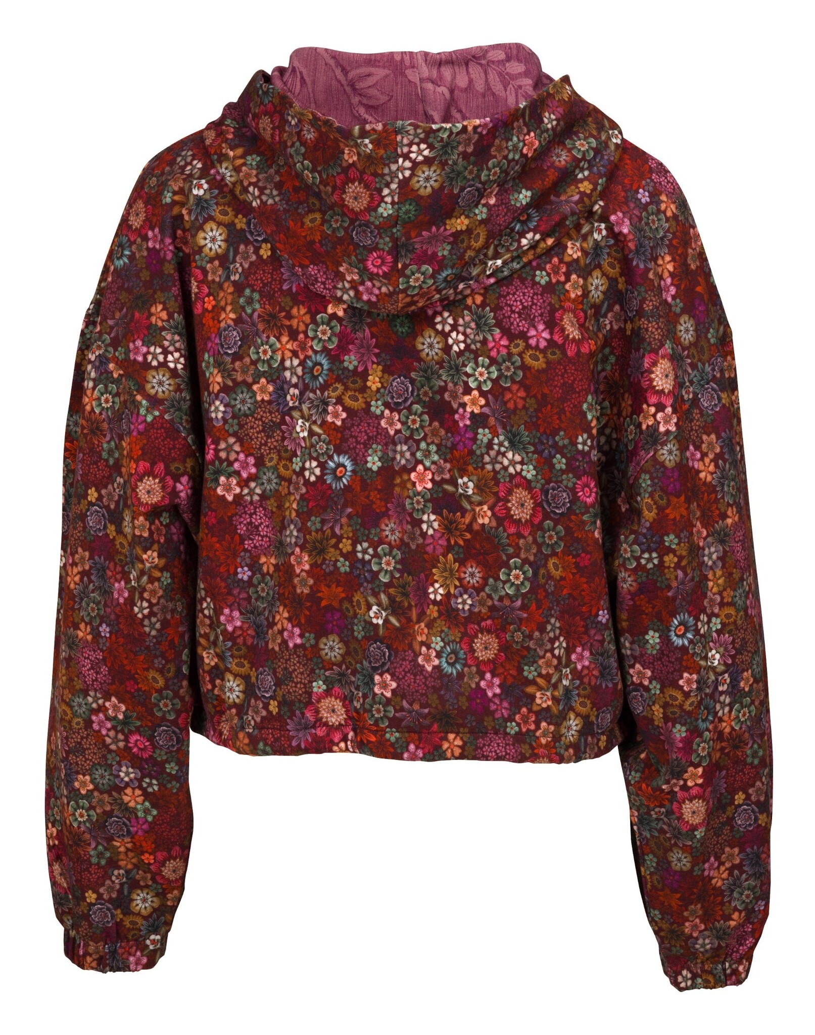 Dit rode vest is gedecoreerd met het speelse Tutti i Fiori dessin. De print bestaat uit een herhaald bloemenpatroon. Het vest heeft pofmouwen en een koord rond de taille om dit aan te trekken. Het vest is cropped en heeft een capuchon.