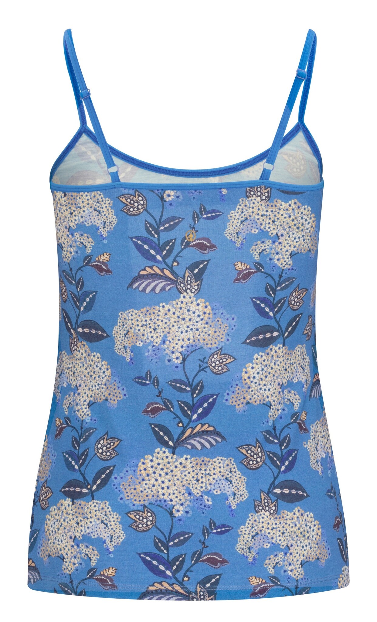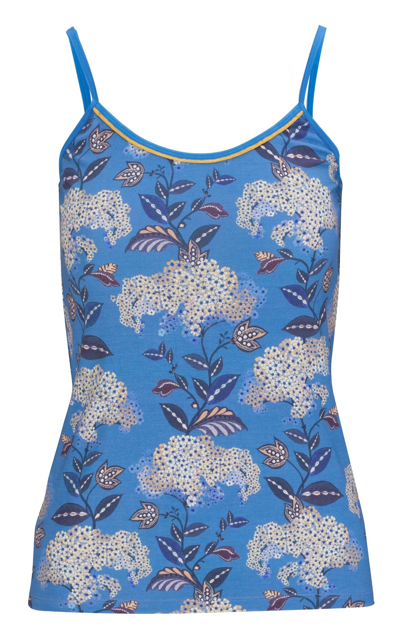 Een perfecte top voor het zomerse weer en gemakkelijk te dragen. Met zachte viscose en elastane voor maximaal comfort. De kobaltblauwe Flora Firenze slim-fit top heeft verstelbare spaghettibandjes en een goudkleurig biezendetail in het midden van de hals.