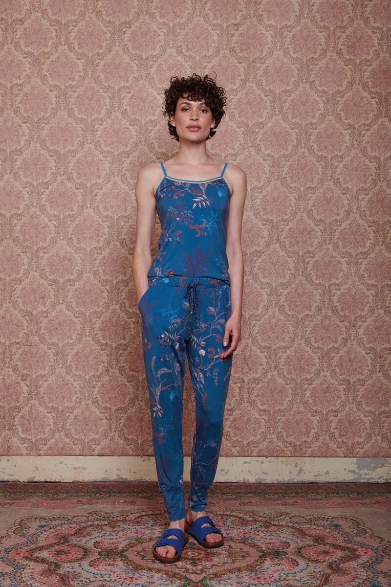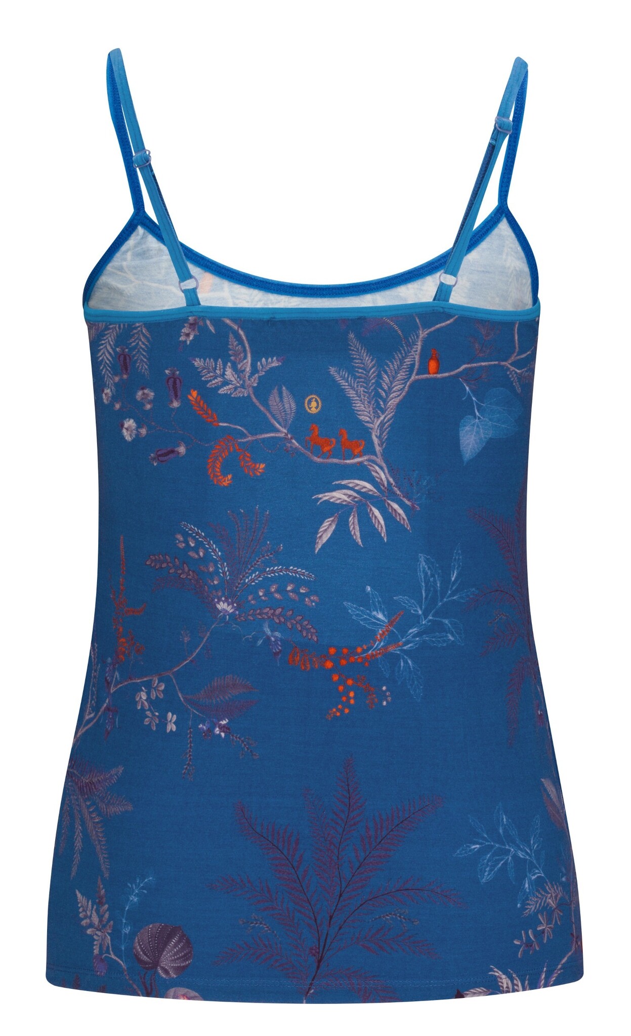 Een perfecte top voor het zomerse weer en gemakkelijk te dragen. Met zachte viscose en elastane voor maximaal comfort. De blauwe slim-fit Isola dessin top heeft verstelbare spaghettibandjes en een goudkleurig biezendetail in het midden van de hals.