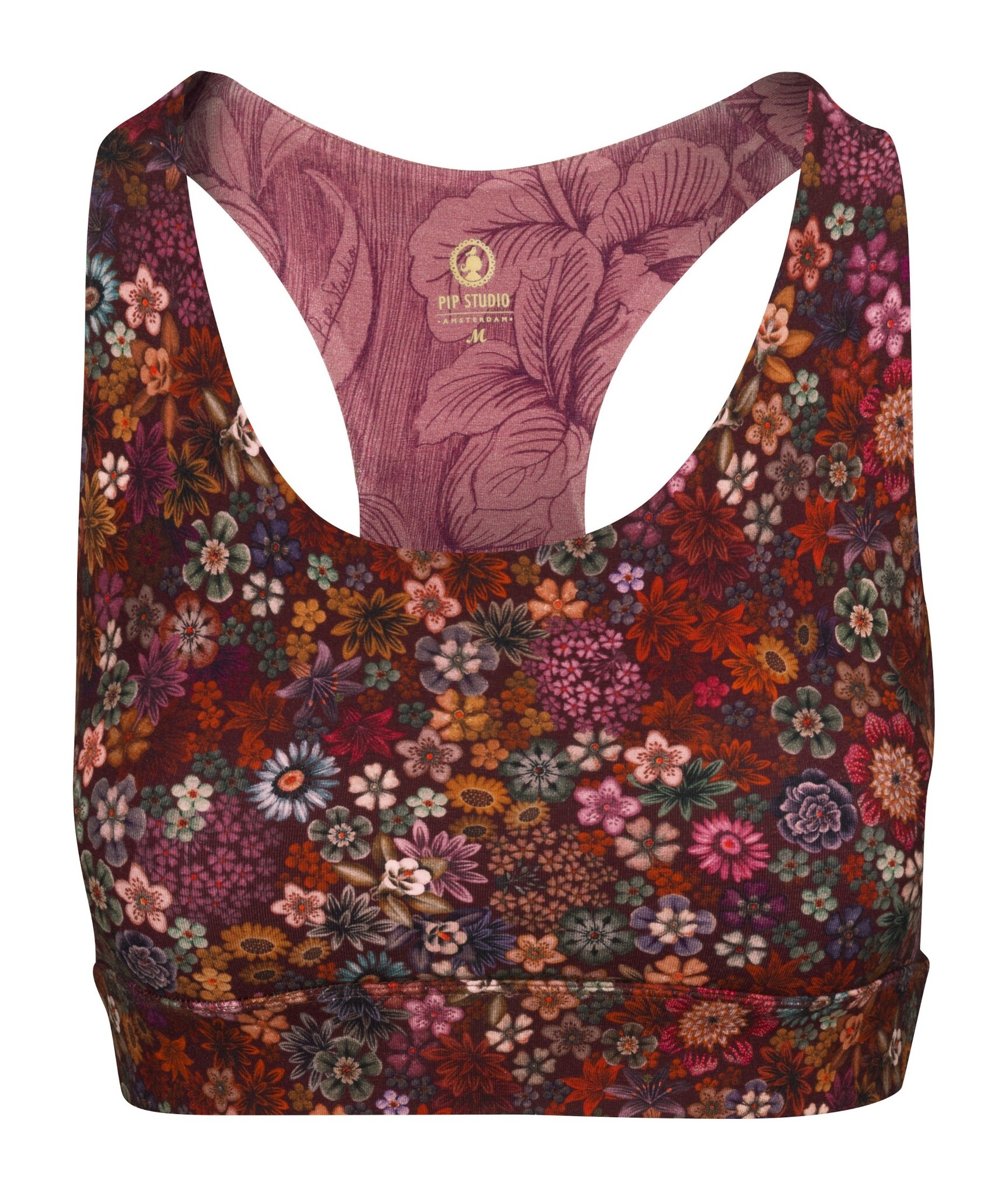 Deze rode sportbeha is voorzien van het speelse Tutti i Fiori dessin. De print bestaat uit een verfijnde print van veelkleurige bloemetjes. De binnenkant is versierd met het Casa dei Fiori dessin.