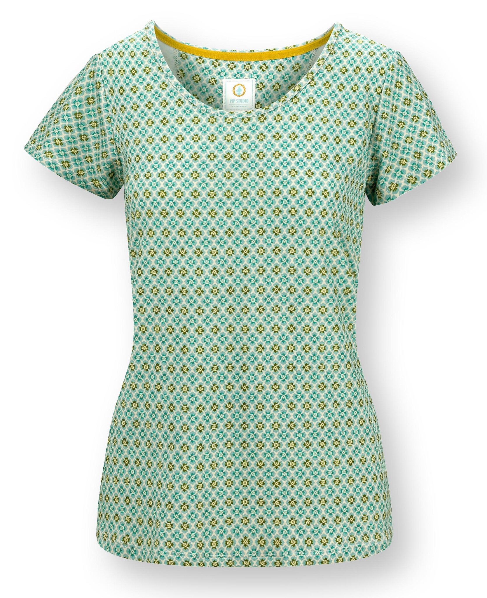 Ga je voor een casual maar modieuze uitstraling? Dan is deze comfortabele Tilly Top Korte Mouw het perfecte basis item om laagjes mee te creëren. Gemaakt van viscose en elastaan waardoor de top heerlijk zacht en stretchy is. De top heeft een ronde hals en korte mouwen, perfect om verschillende casuel stijlen mee te creëren. Het Mojo dessin bestaat uit een klein herhaald bloemetjes print.