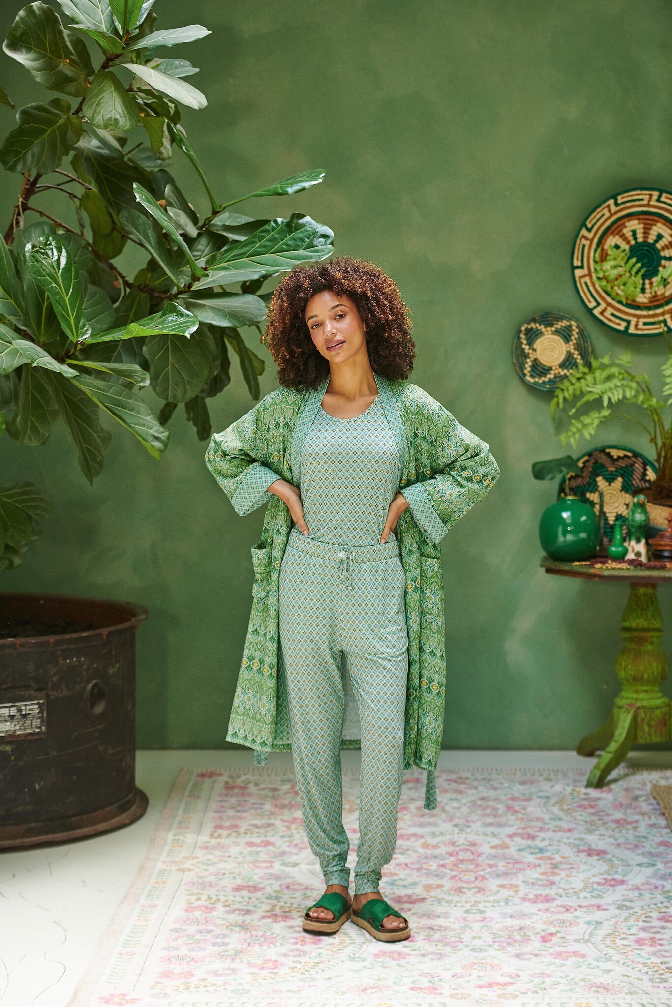 Gemaakt van 95% viscose en 5% elastaan. Wasbaar op 30 graden. Op een lage stand strijken indien nodig. Het item kan niet in de droger. Niet stomen. Niet bleken.