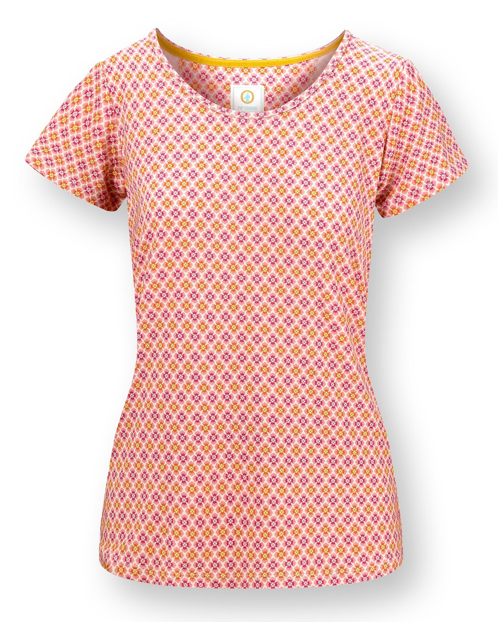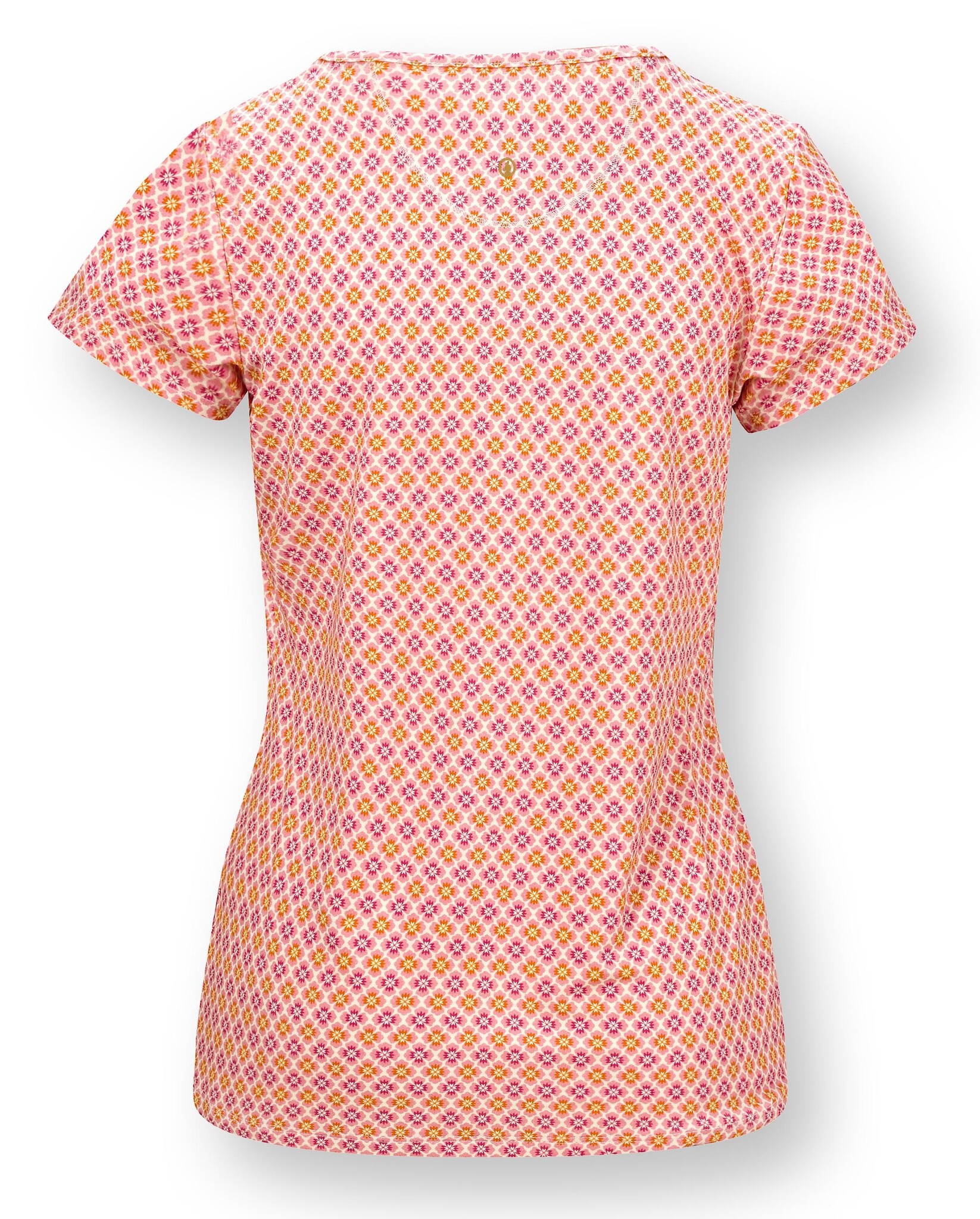 Ga je voor een casual maar modieuze uitstraling? Dan is deze comfortabele Tilly Top Korte Mouw het perfecte basis item om laagjes mee te creëren. Gemaakt van viscose en elastaan waardoor de top heerlijk zacht en stretchy is. De top heeft een ronde hals en korte mouwen, perfect om verschillende casuel stijlen mee te creëren. Het Mojo dessin bestaat uit een klein herhaald bloemetjes print.