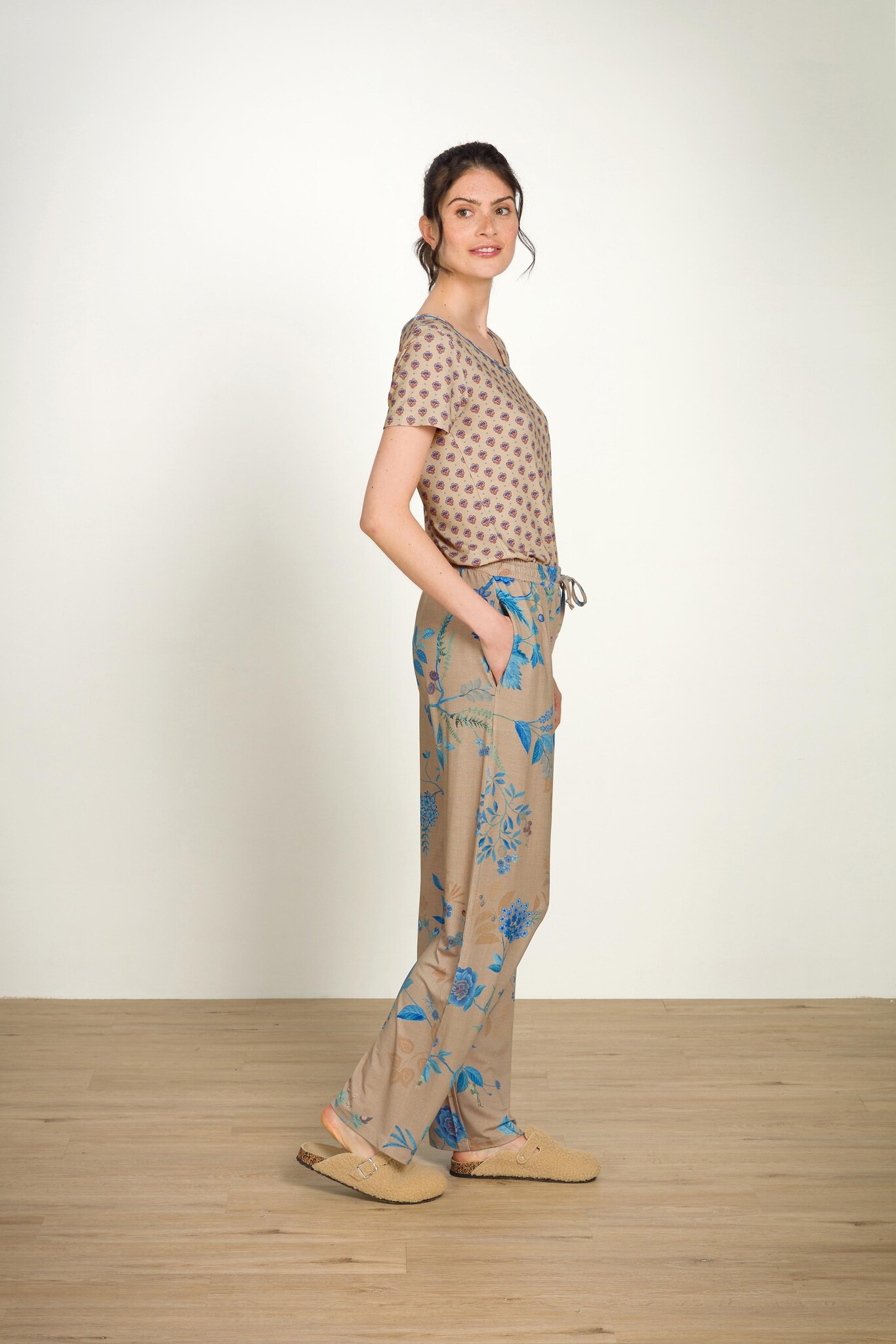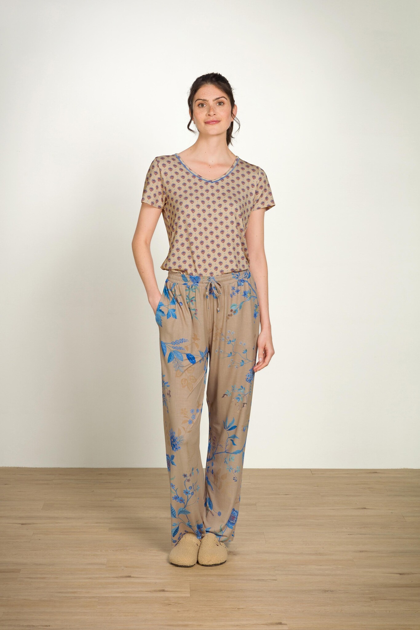 Toy Short Sleeve Top Jaipur Flower Khaki Blue