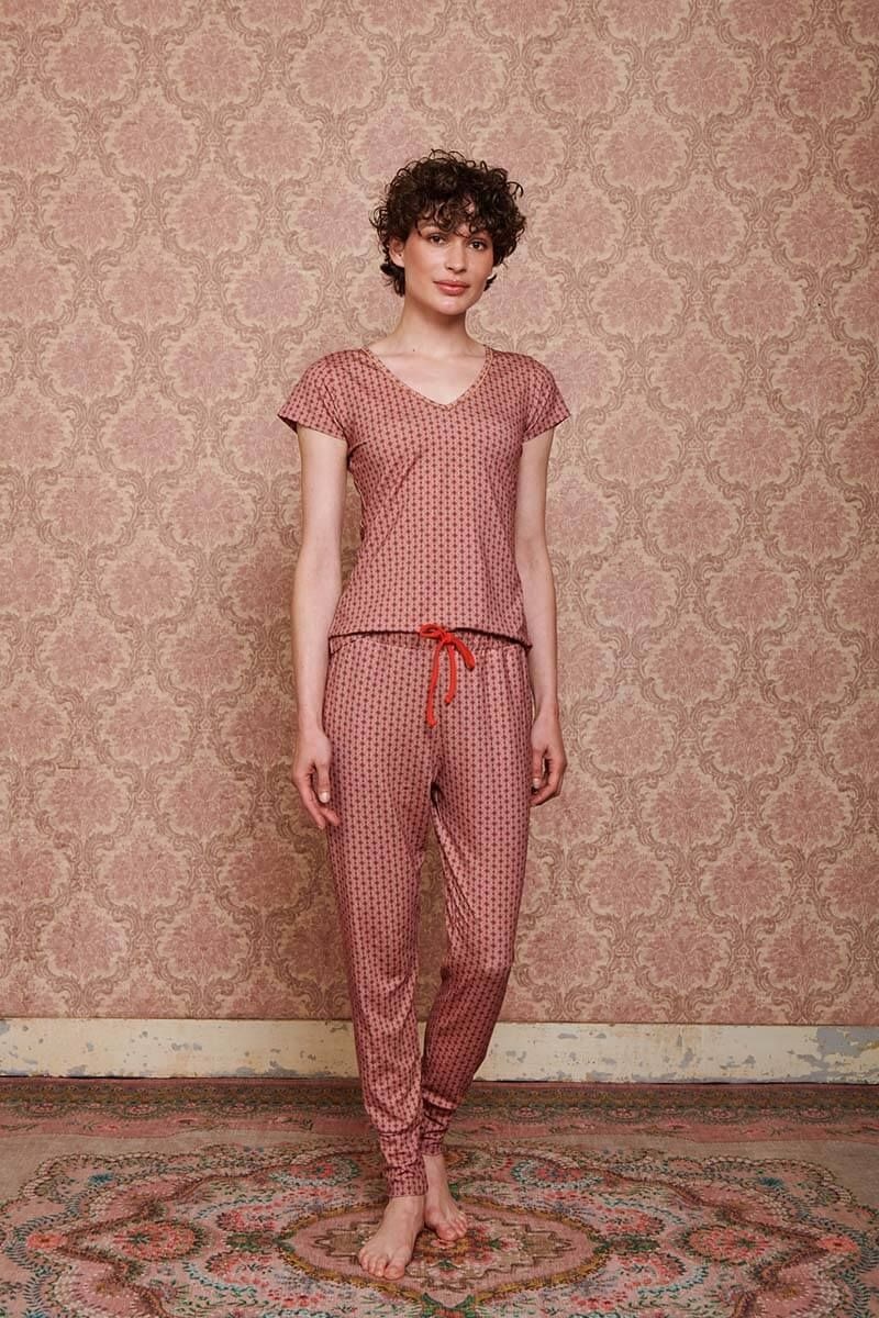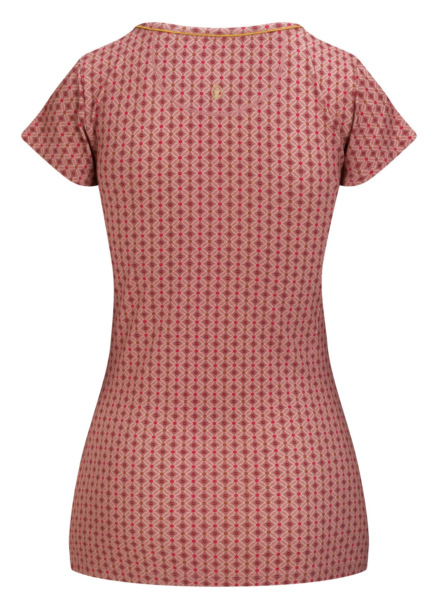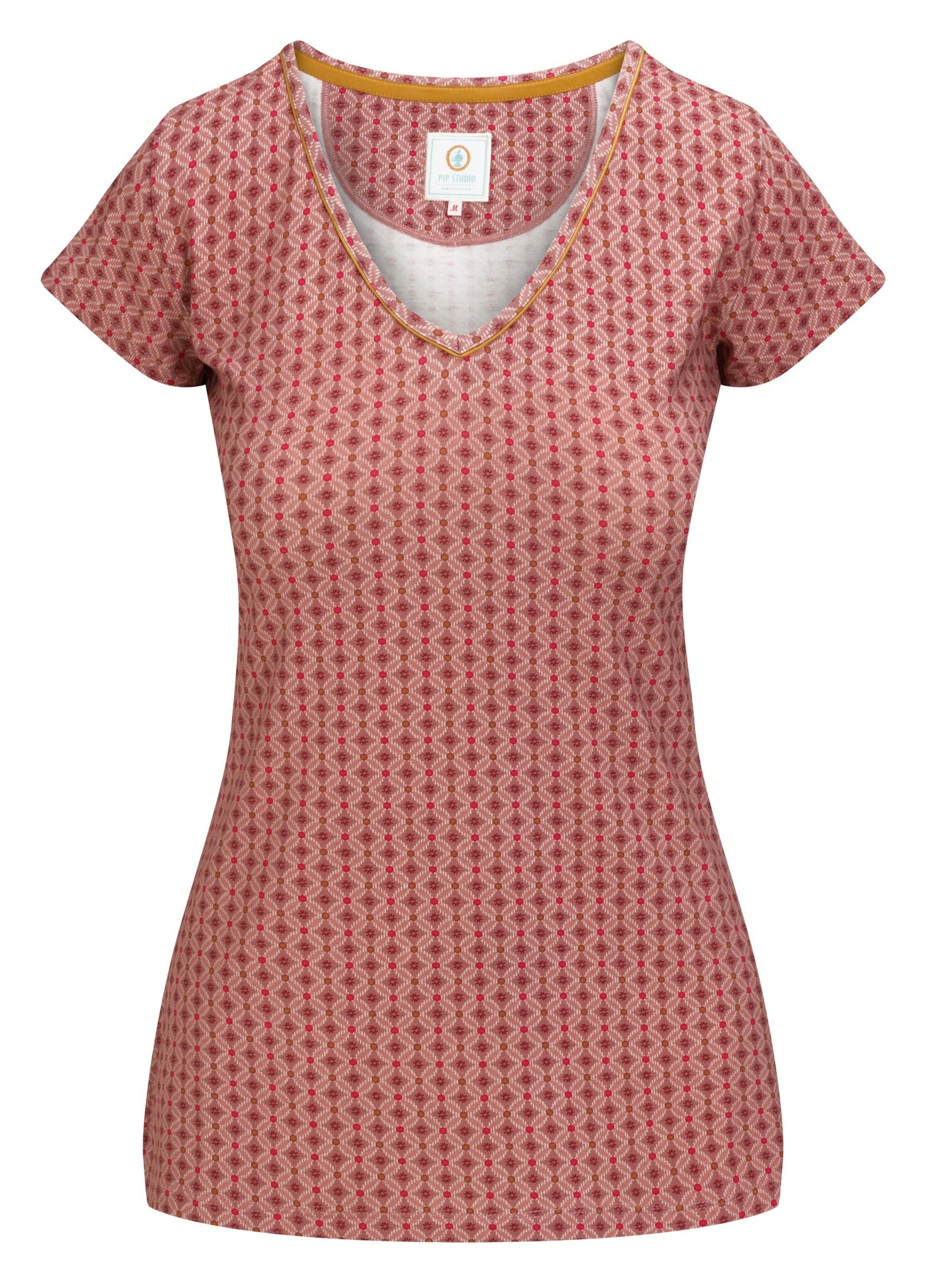 Op zoek naar een basic top voor een casual look? Deze comfortabele Toy top is het perfecte basisitem om laagjes mee te creëren. Gemaakt van viscose en elastane waardoor de top heerlijk zacht en stretchy is. Deze roze top heeft een v-hals en is perfect om verschillende casual stijlen mee te creëren. De top is gedecoreerd met het Tegola dessin met subtiele strepen. Mix en match deze top met items uit de nieuwe homewear collectie voor een mooie look.