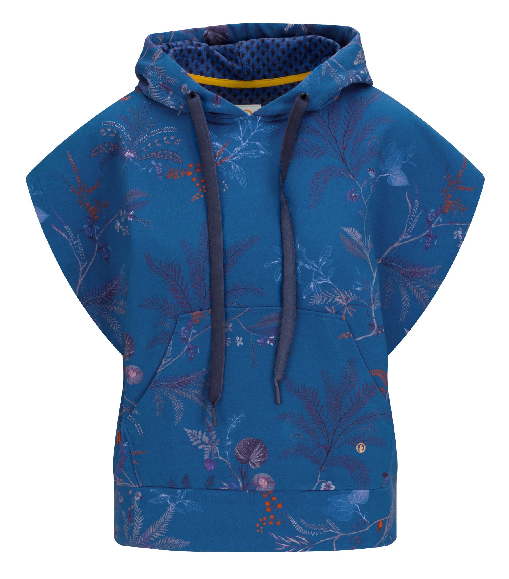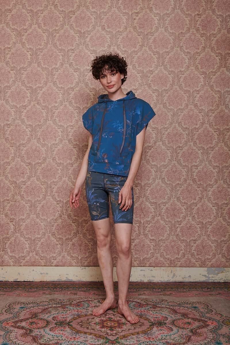 Deze nieuwe blauwe hoodie met korte mouw is perfect om je gymoutfit compleet te maken of te combineren met een spijkerbroek voor een casual look. Deze hoodie heeft doorgegroeide mouwen en komt in onze prachtige print Isola. Deze oversized sweater heeft een contrastkleurige gevoerde capuchon met trekkoorden en heeft een kangoeroezak aan de voorzijde.